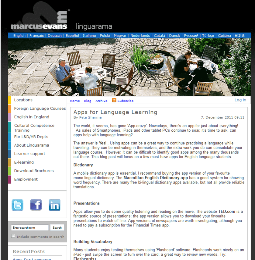 I am really delighted to say that the first in a new series of blog posts has just gone up. These posts are written for the language training organisation marcus evans Linguarama. These posts are available to everyone in the language teaching profession on the Linguarama blog.