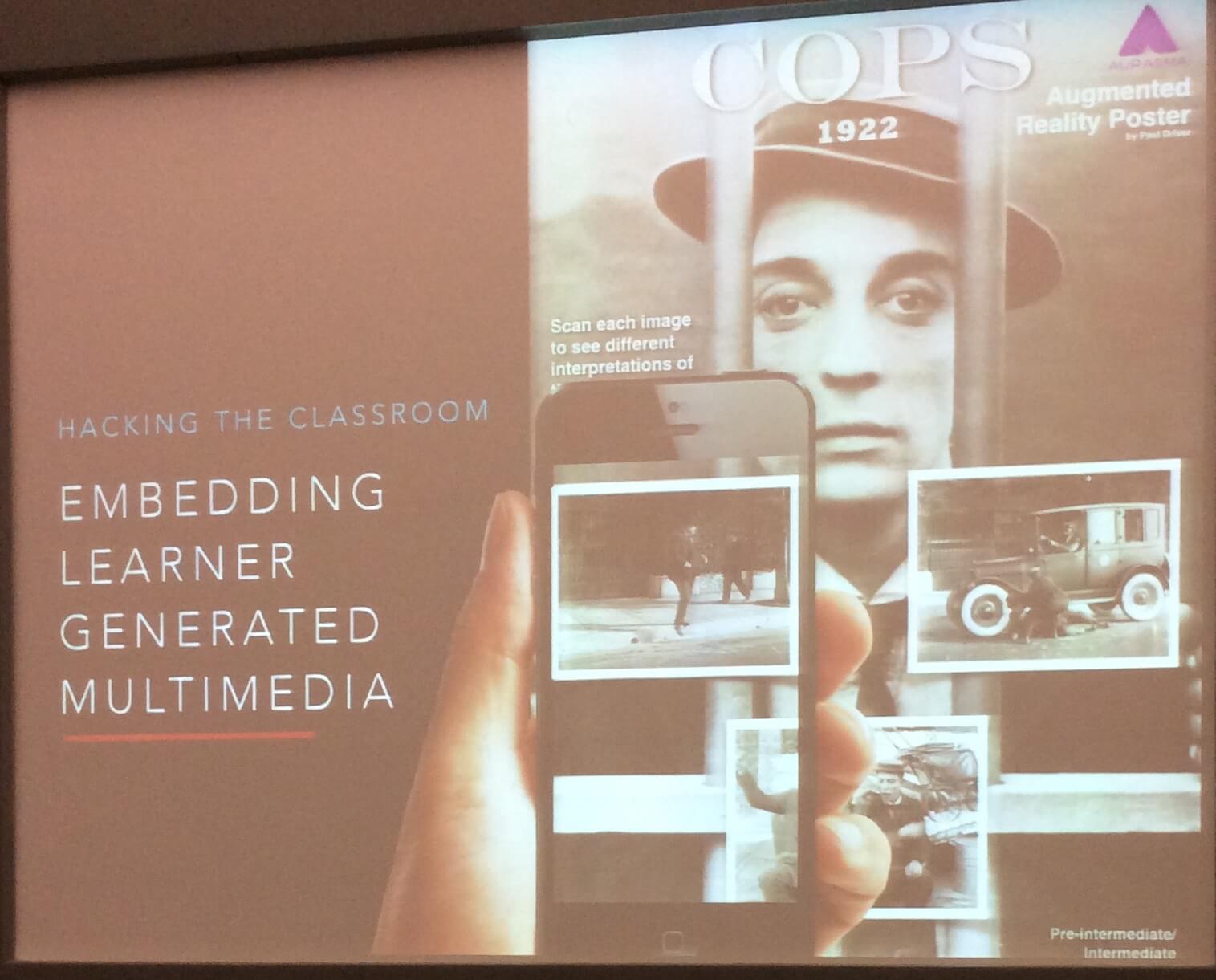 I’d read the article in Modern English Teacher. I’d used the pictures in that article to demonstrate Augmented Reality. But I didn’t really quite ‘get’ Aurasma until this session. A refreshingly humorous session in the midst of the intellectual earnestness.